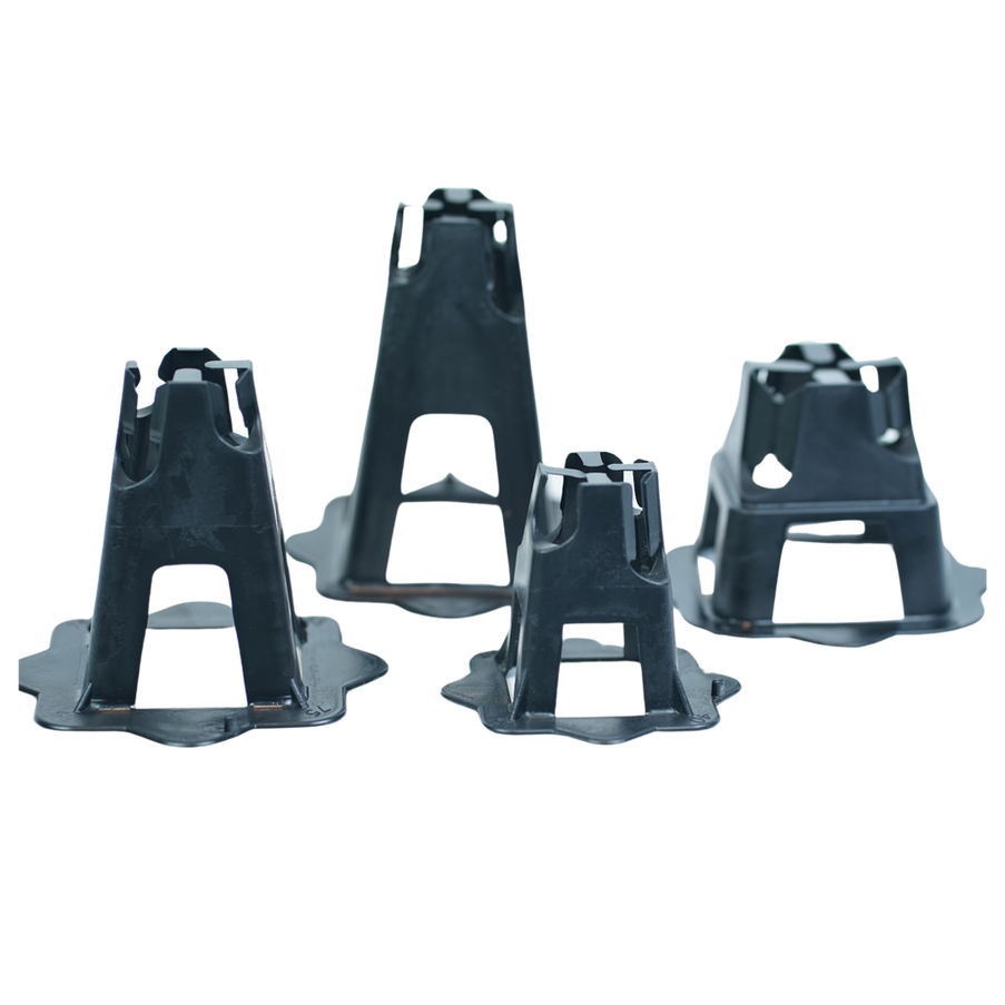 Grade Plate Spacers are used to support reinforcing on waterproof membranes and soft grade base material. The large base distributes the load and prevents damage. Grade Plate Spacers are available in several sizes offering cover from 40mm to 100mm.